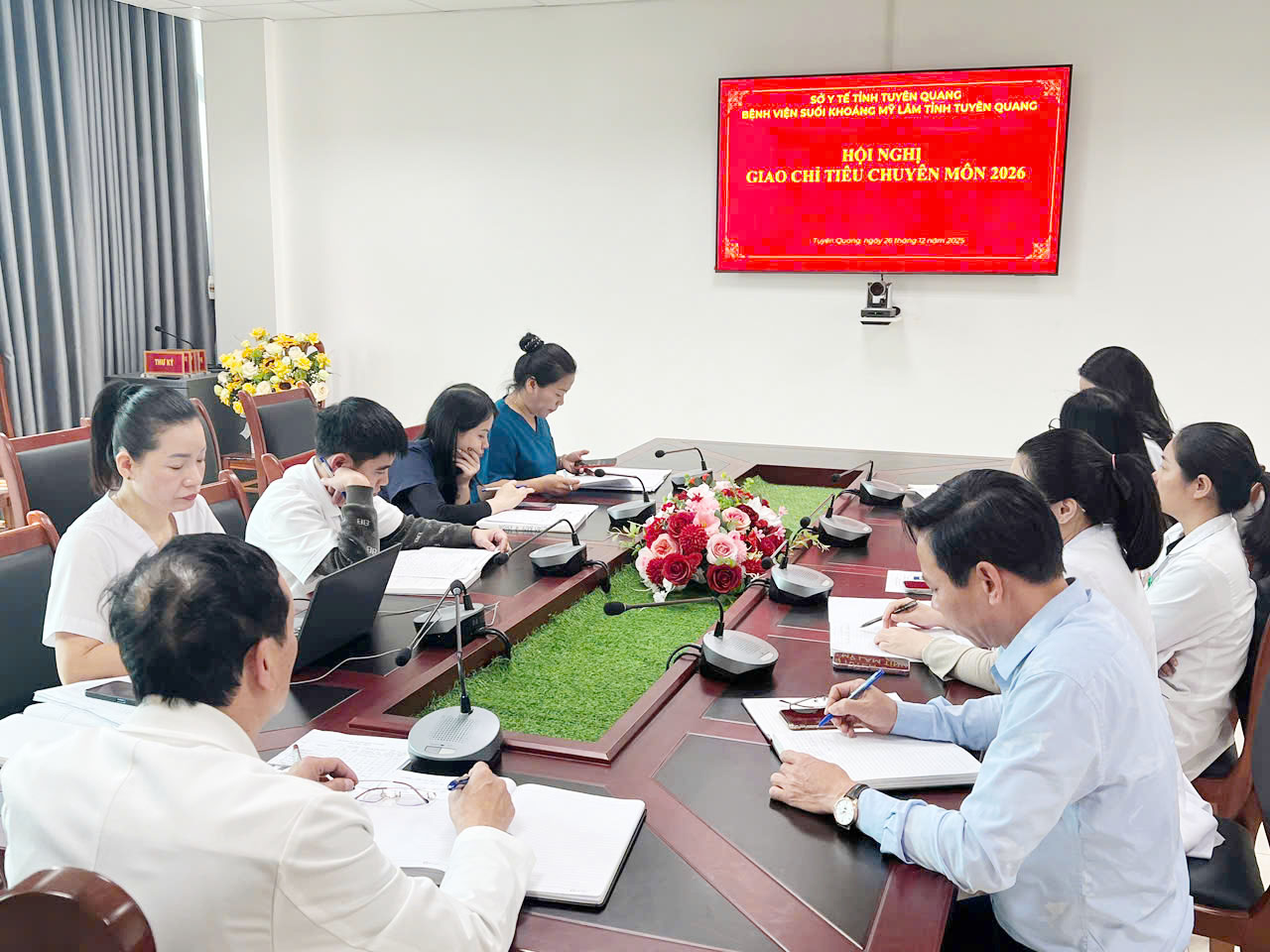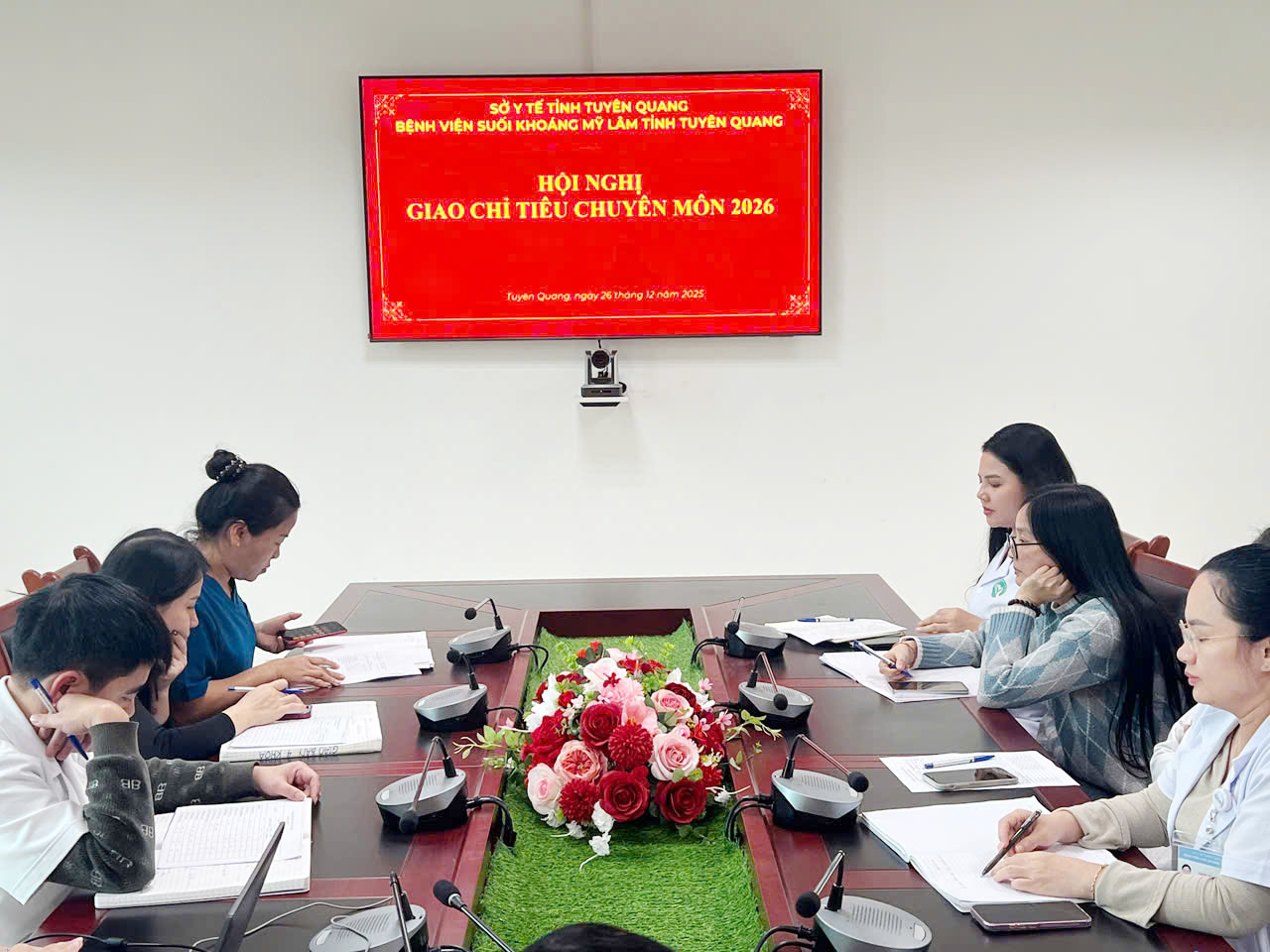Ngày 26/12/2025, Bệnh viện Suối khoáng Mỹ Lâm tỉnh Tuyên Quang đã tổ chức Hội nghị giao chỉ tiêu chuyên môn năm 2026, chủ trì buổi hội nghị BS CKII. Vương Ngọc Thanh – Bí thư chi bộ, Giám đốc Bệnh viện và lãnh đạo quản lý các khoa, phòng.