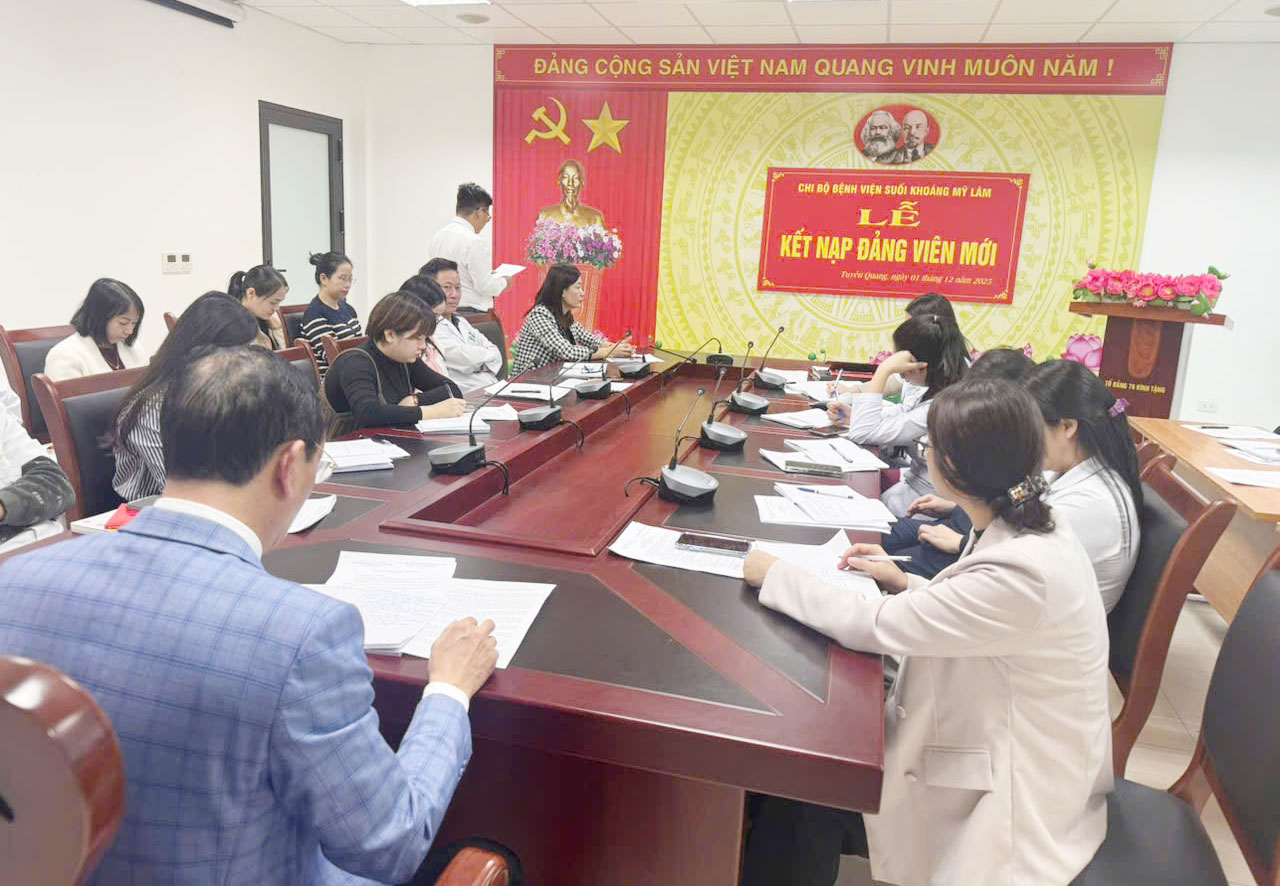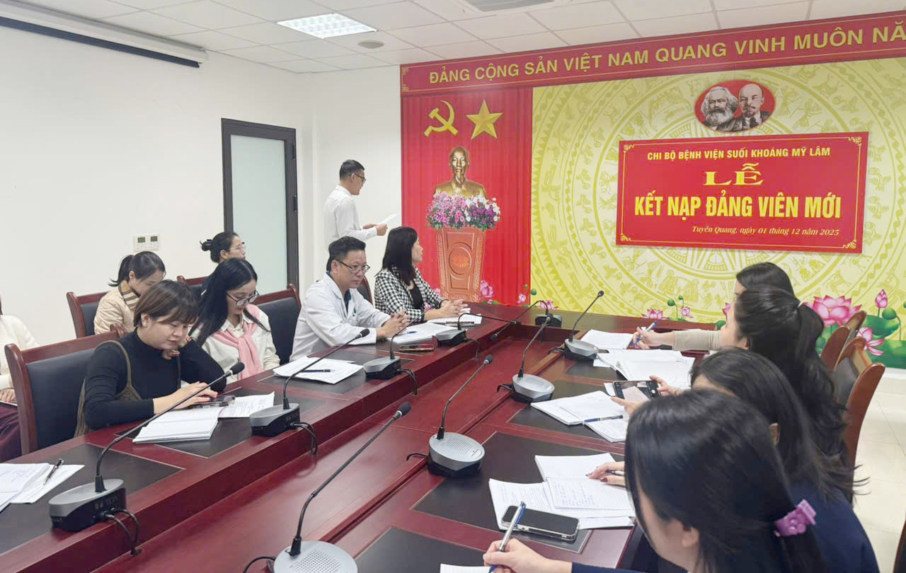 Ngày 01/12/2025, Chi bộ Bệnh viện Suối khoáng Mỹ Lâm tỉnh Tuyên Quang đã long trọng tổ chức Lễ kết nạp Đảng viên mới cho hai quần chúng ưu tú là đồng chí Đỗ Văn Hoàng và đồng chí Nguyễn Quốc Huy.