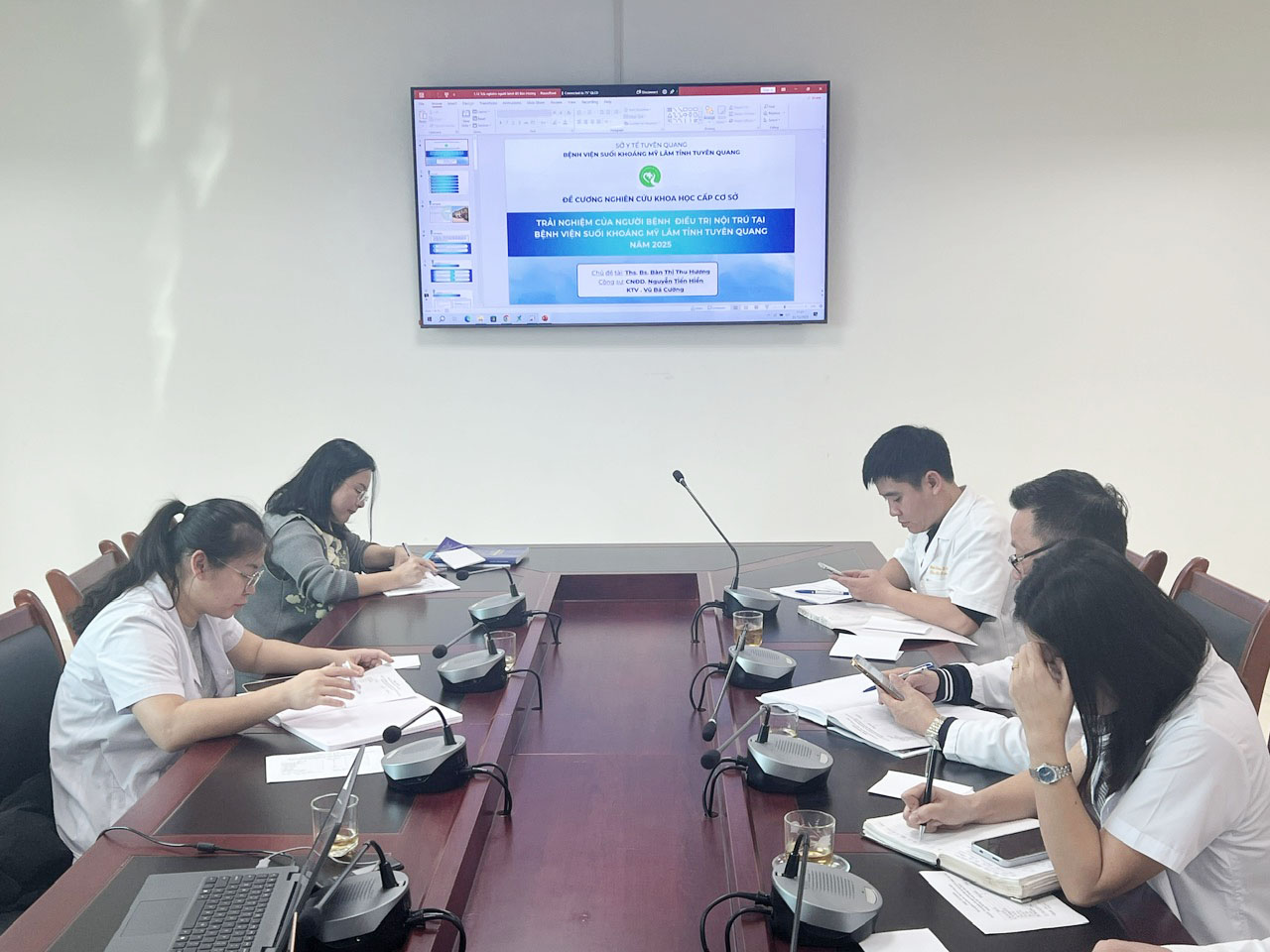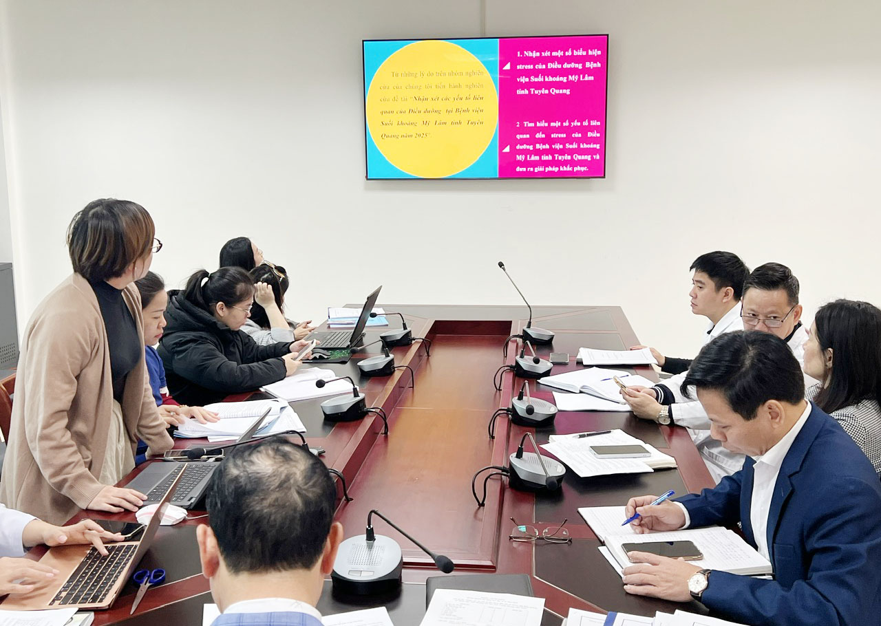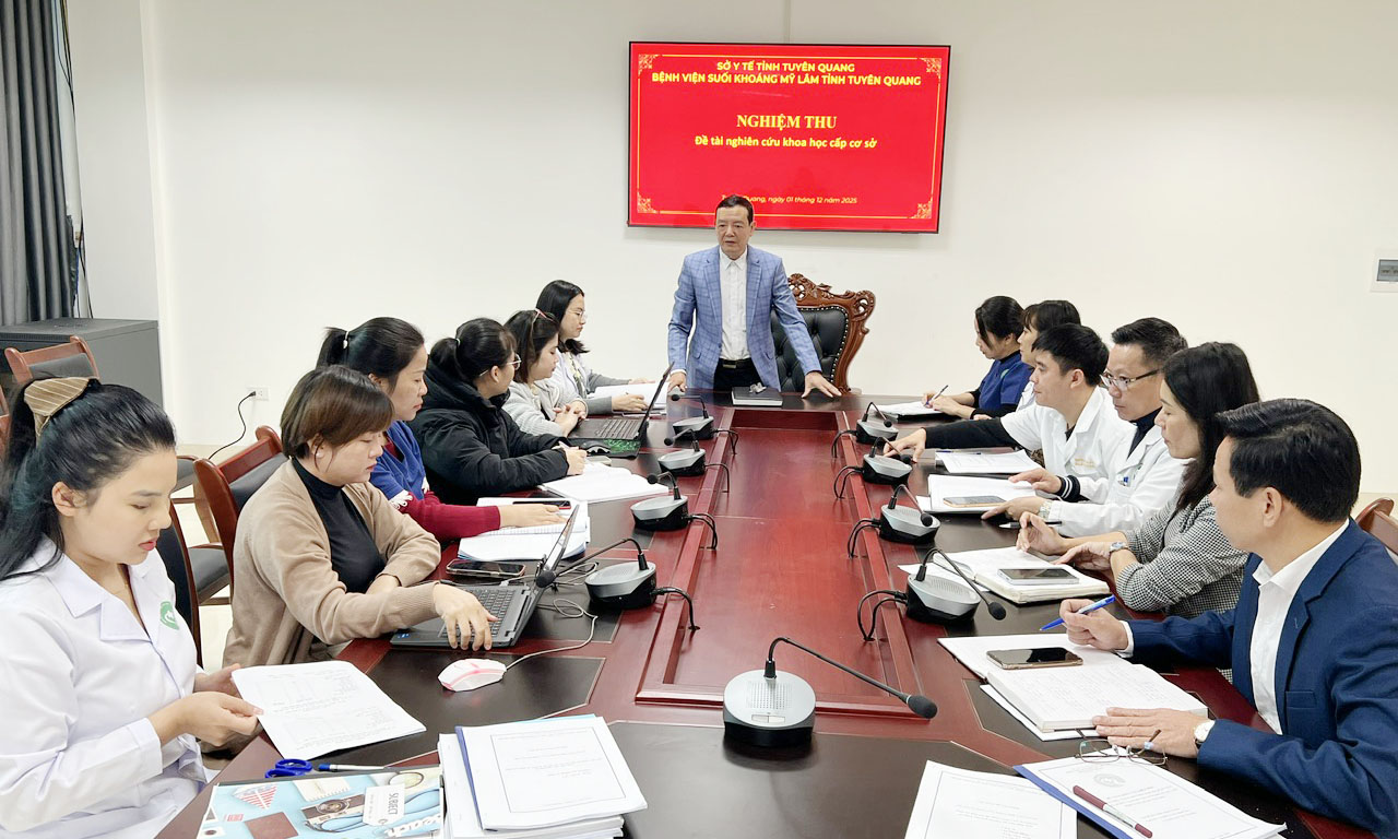 Ngày 01/12/2025, Bệnh viện Suối khoáng Mỹ Lâm tỉnh Tuyên Quang đã tổ chức Hội đồng nghiệm thu 11 đề tài nghiên cứu khoa học cấp cơ sở năm 2025. Đây là hoạt động thường niên nhằm thúc đẩy phong trào nghiên cứu khoa học, nâng cao chất lượng chuyên môn, ứng dụng các giải pháp mới trong chăm sóc và điều trị người bệnh.